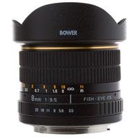 Bower SLY358N Extreme Wide-Angle 8mm f/3.5 Fisheye Lens for Nikon The ultra wide-angle 8mm f/3.5 lens for Nikon is a unique fisheye lens designed to capture all-encompassing images. Its advanced aspherical, multi-coated optical glass reduces flare and minimizes outer-edge distortion for optimal image quality. Its remarkable 180° perspective provides the photographer with excellent versatility for shooting in cramped spaces and capturing wide-sweeping landscapes. Includes attached tulip lens hood and pouch.